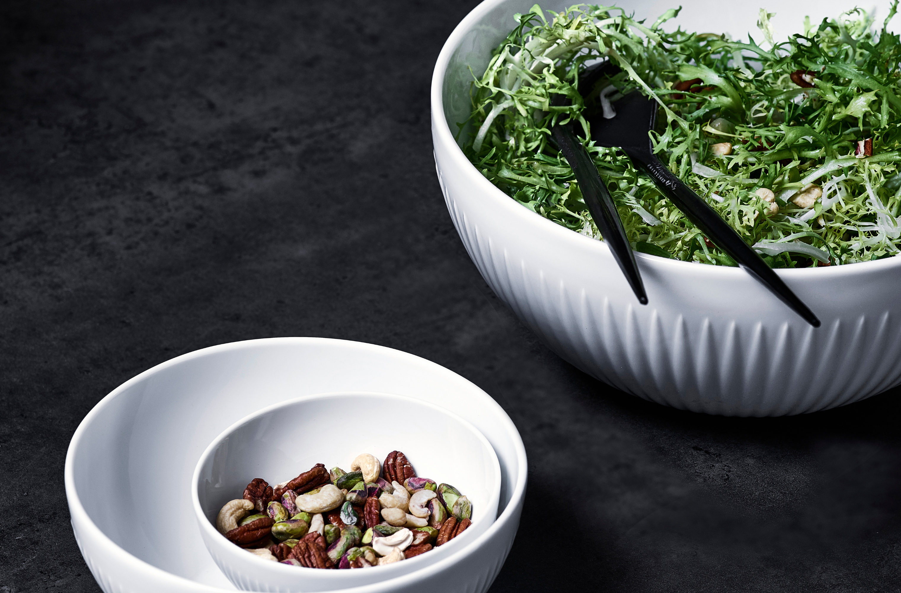 Hvid Riflet Skålsæt - 3 dele
