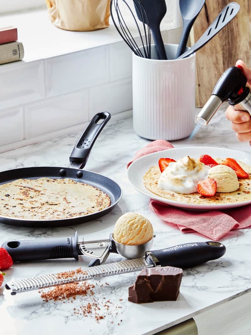 Her på siden har vi samlet alt det, du skal bruge for at lave nemme og sprøde pandekager – hver gang. Vi har alt fra pandekagepander til røreskåle, målebægere, piskeris og hvad du ellers har brug for, når der skal laves en god pandekageopskrift. Man skal jo ikke gå ned på pandekage-grej på årets pandekagedag. Gå på opdagelse og find det, du mangler, så du er klar til pandekager i store stakke.